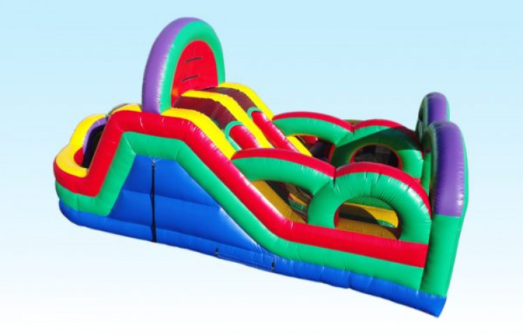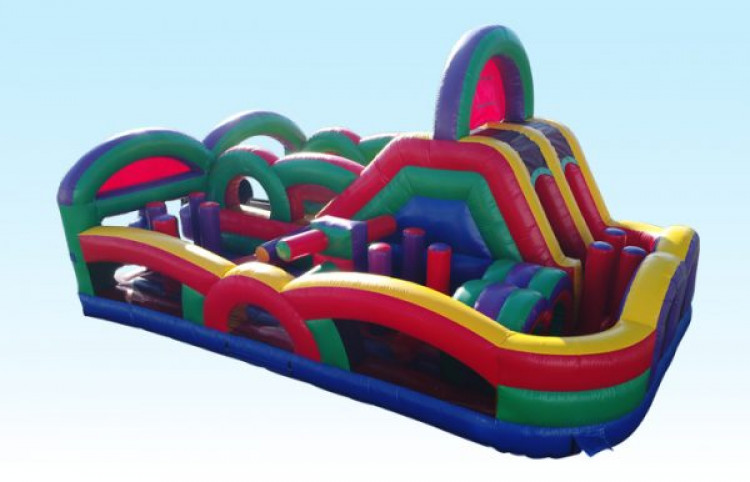 New for 2023! Over 50' of obstacles in a compact size. Two racers make their way to the far end of the course, then turn the corner and head to the finish line, which is right next to the start. This layout is easier to staff, and allows participants to return to where they left their shoes.