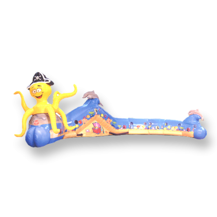 The little ones will love this Under the Sea obstacle course! Biffers, baffers, slides and more make up the adventure through the 55-foot long enclosed obstacle course with the giant octopus and bright colored graphics.