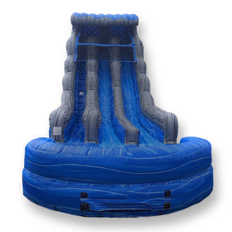 Two lanes make this a perfect option for larger events where you want to keep more people cool and having some adrenaline pumping fun. With an eye-catching design, bright color scheme, and very steep slides, this 22' dual lane slide will thrill and chill your guests all day long! Slide platform sits just over 13' high.