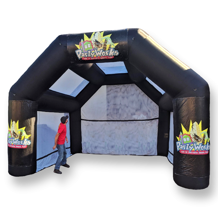 How's your fastball? Give our speed pitch cage a shot and find out just how hard 90mph really is! We use a professional Jugs radar gun, the same equipment used by Major League Baseball, so there's no foolin' your friends. Inflatable cage (pictured) is recommended for most purposes. PartyWorks logo banners can be removed and/or replaced with custom banners (additional cost). Smaller, metal frame cage may be available by special request.